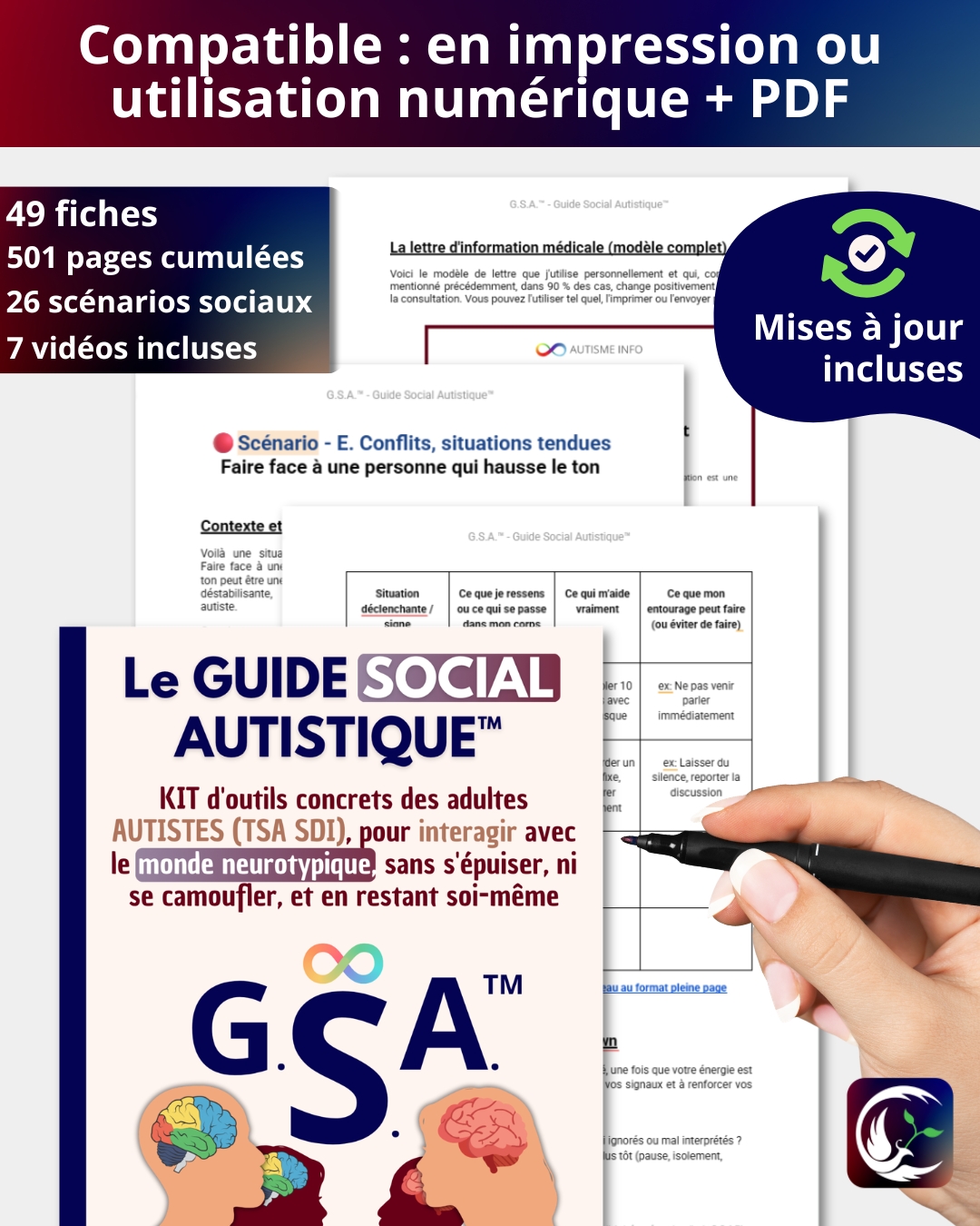 Le G.S.A.™ ne vous explique pas ce qu'est l'autisme. Vous le savez déjà. Il vous donne des outils concrets pour gérer les situations sociales du quotidien.